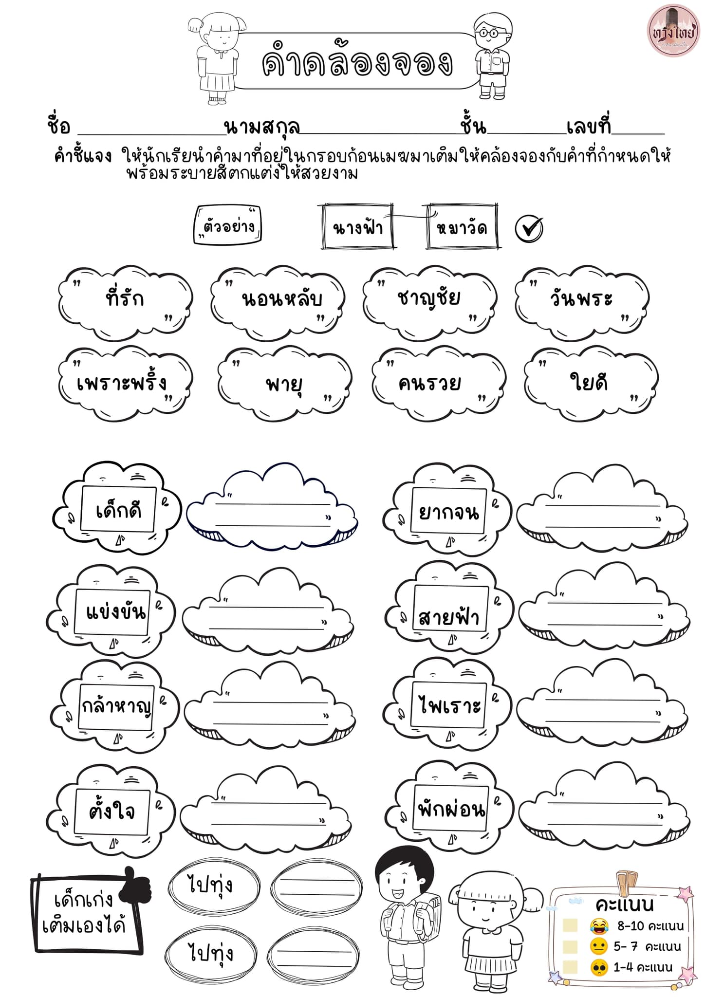 รวมใบงานน่ารัก ๆ ภาษาไทยระดับประถมศึกษา ใบงานน่ารัก 20 ชุด