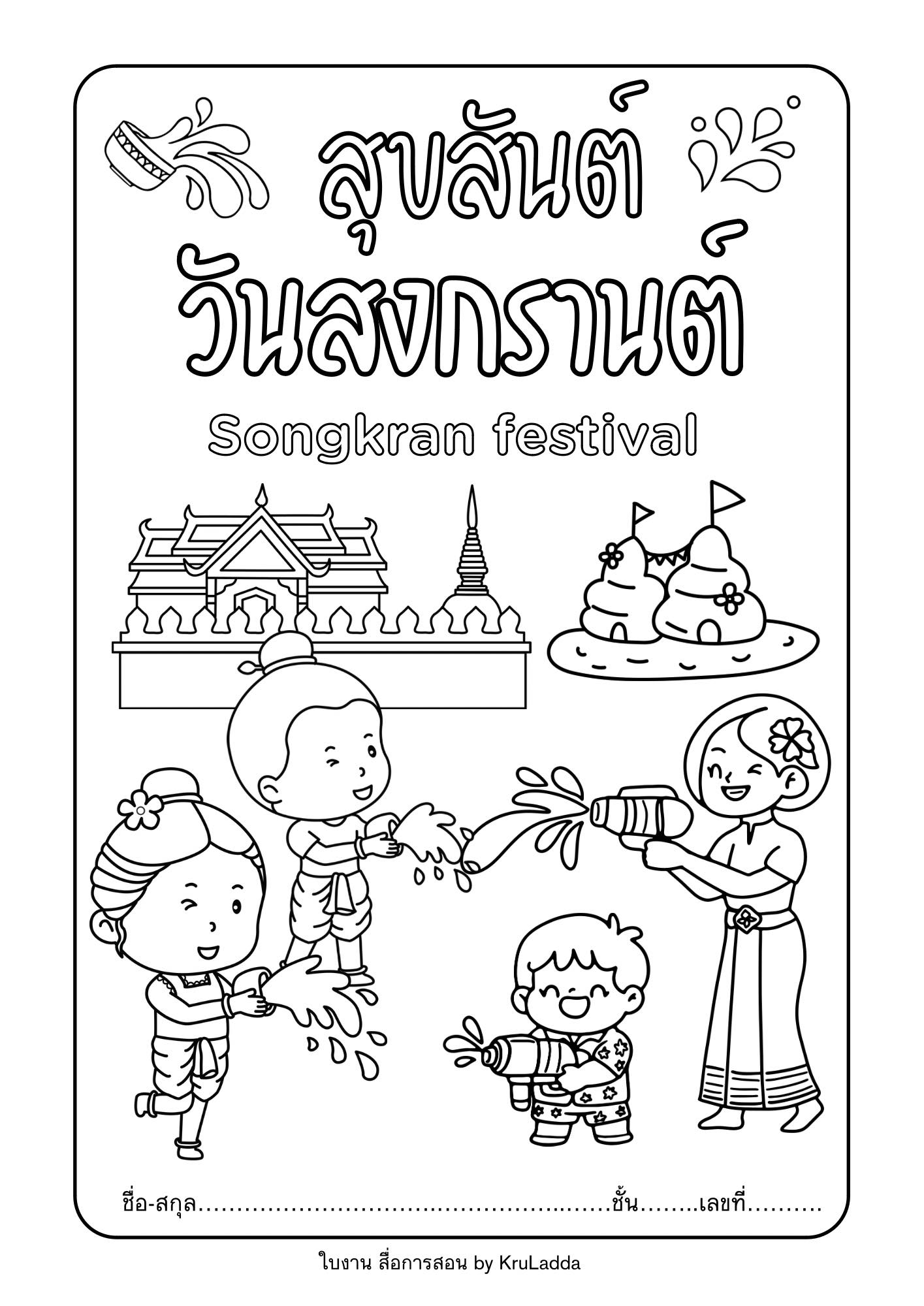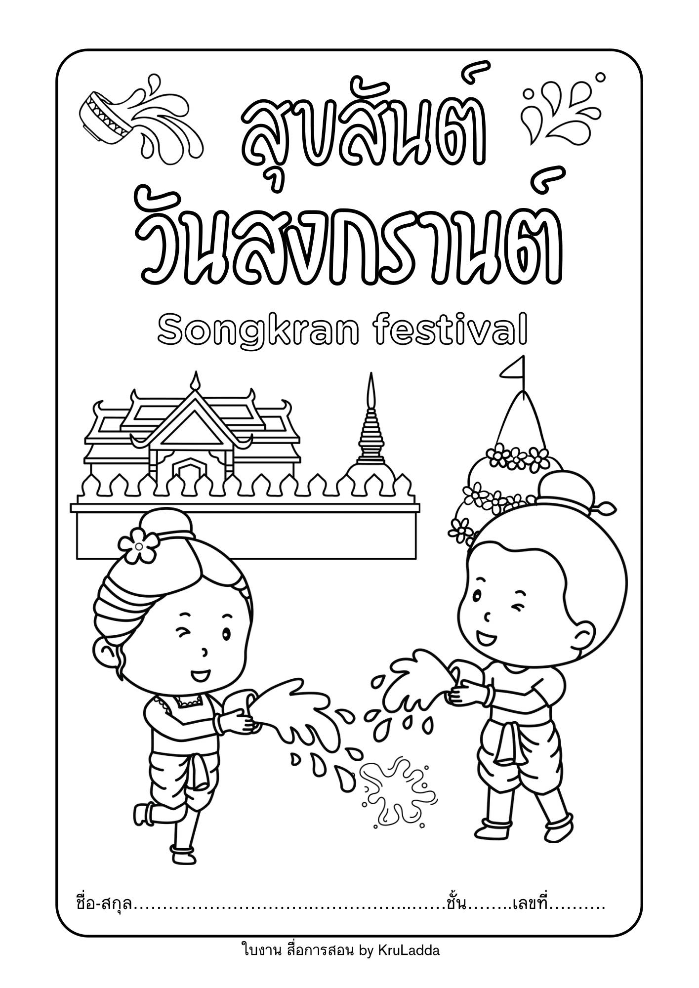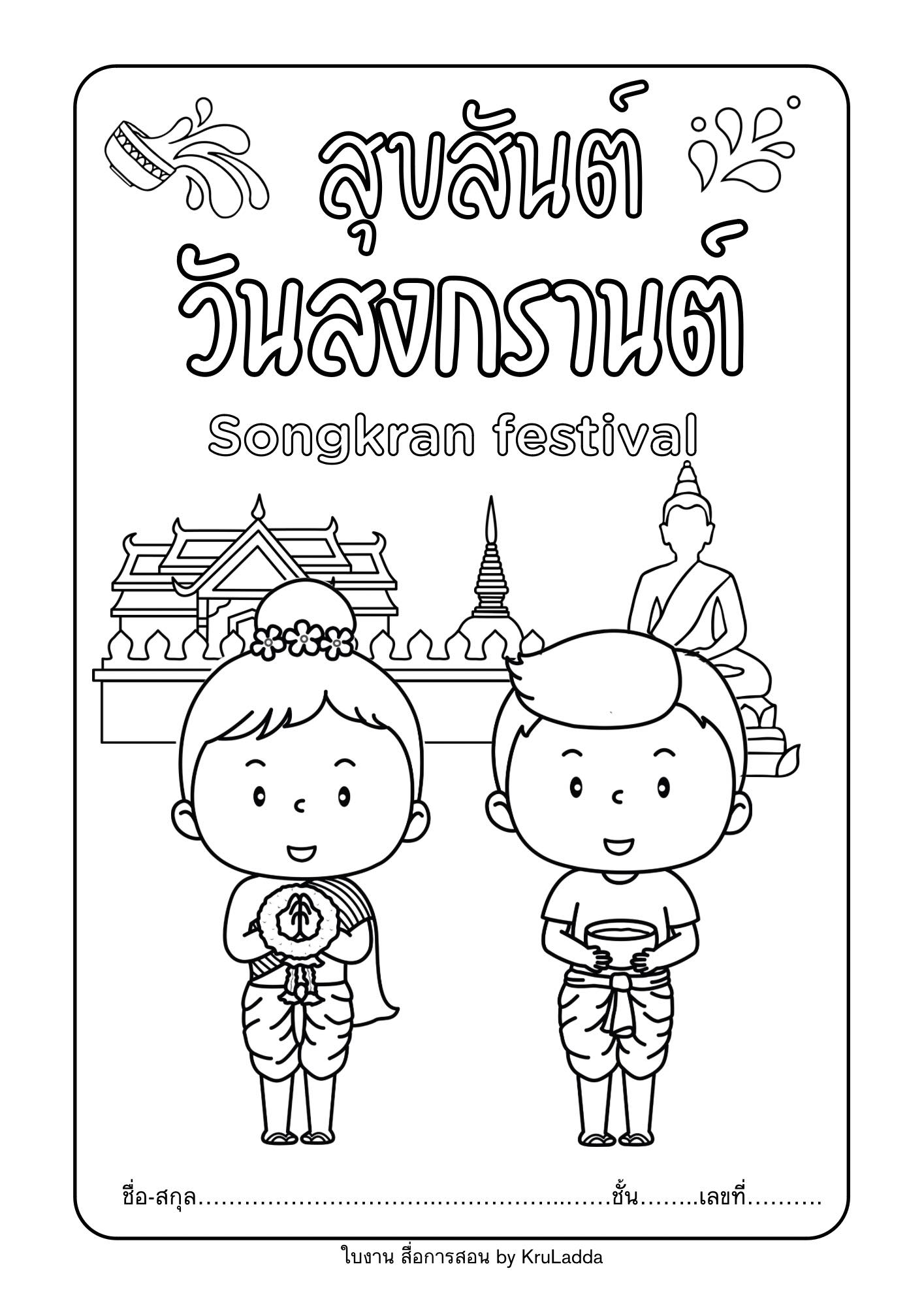 ใบงานสุขสันต์วันสงกรานต์ ใบงานระบายสีสวยสวยมาแล้วจ้า