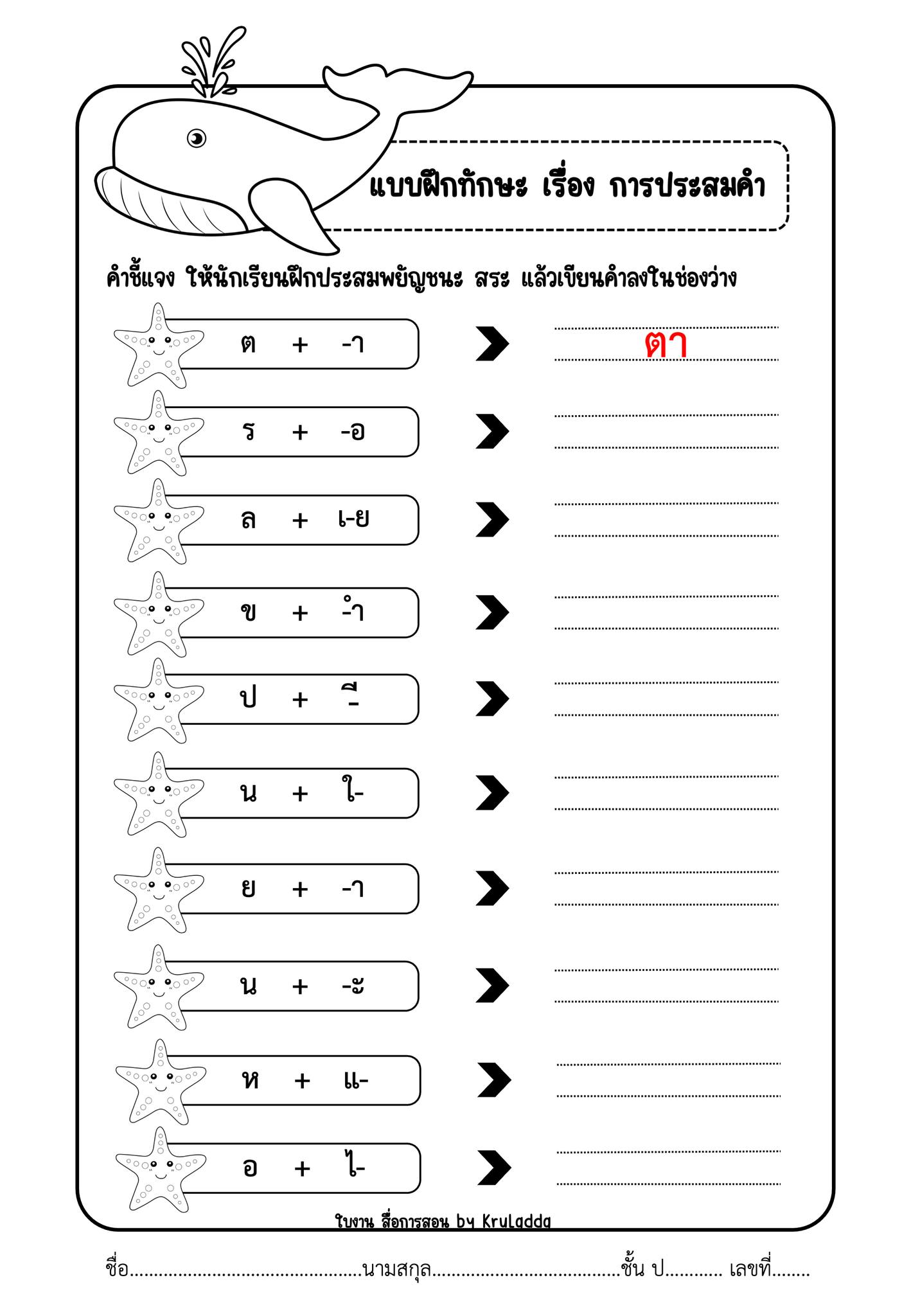 วันนี้เรามีมาแบ่งปันแล้ว เป็นใบงาน แบบฝึกทักษะ เรื่องการประสมคำ