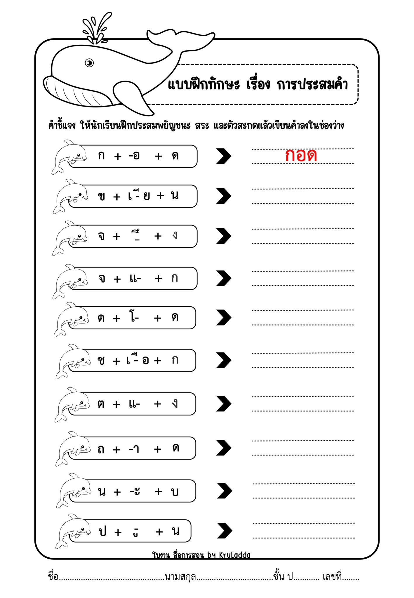 โดยให้นักเรียนฝึกประสมพยัญชนะ สระ แล้วเขียนคำลงในช่องว่าง