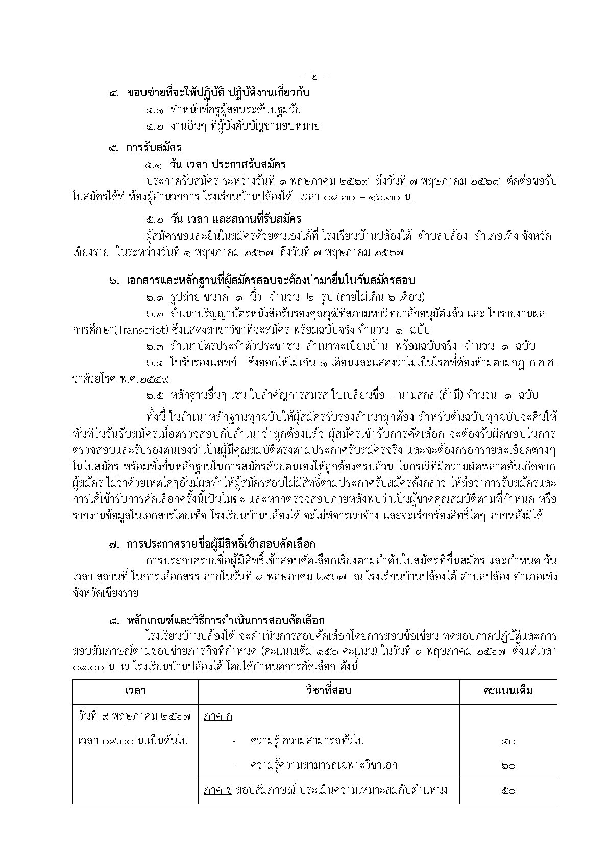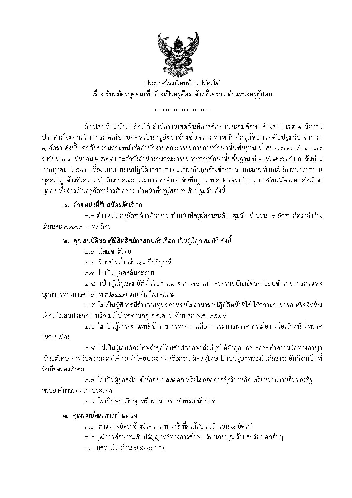 ประกาศรับสมัครบุคคลเป็นครูอัตราจ้างชั่วคราว ทำหน้าที่ครูผู้สอนระดับปฐมวัย จำนวน 1 อัตรา