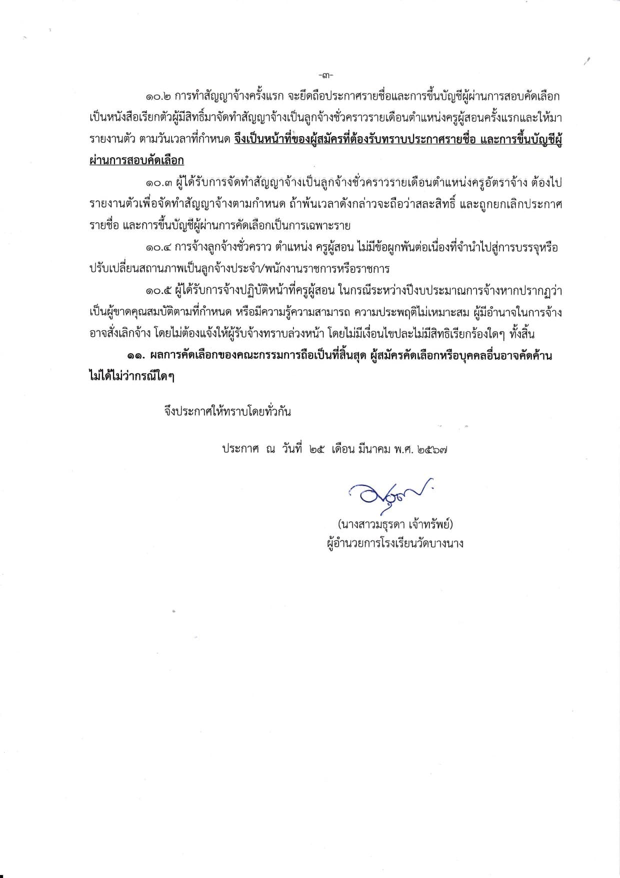 โรงเรียนวัดบางนาง ขยายเวลาการรับสมัคร ครูอัตราจ้าง วิชาภาษาอังกฤษ จำนวน 1 อัตรา เงินเดือน 15,000 บาท
