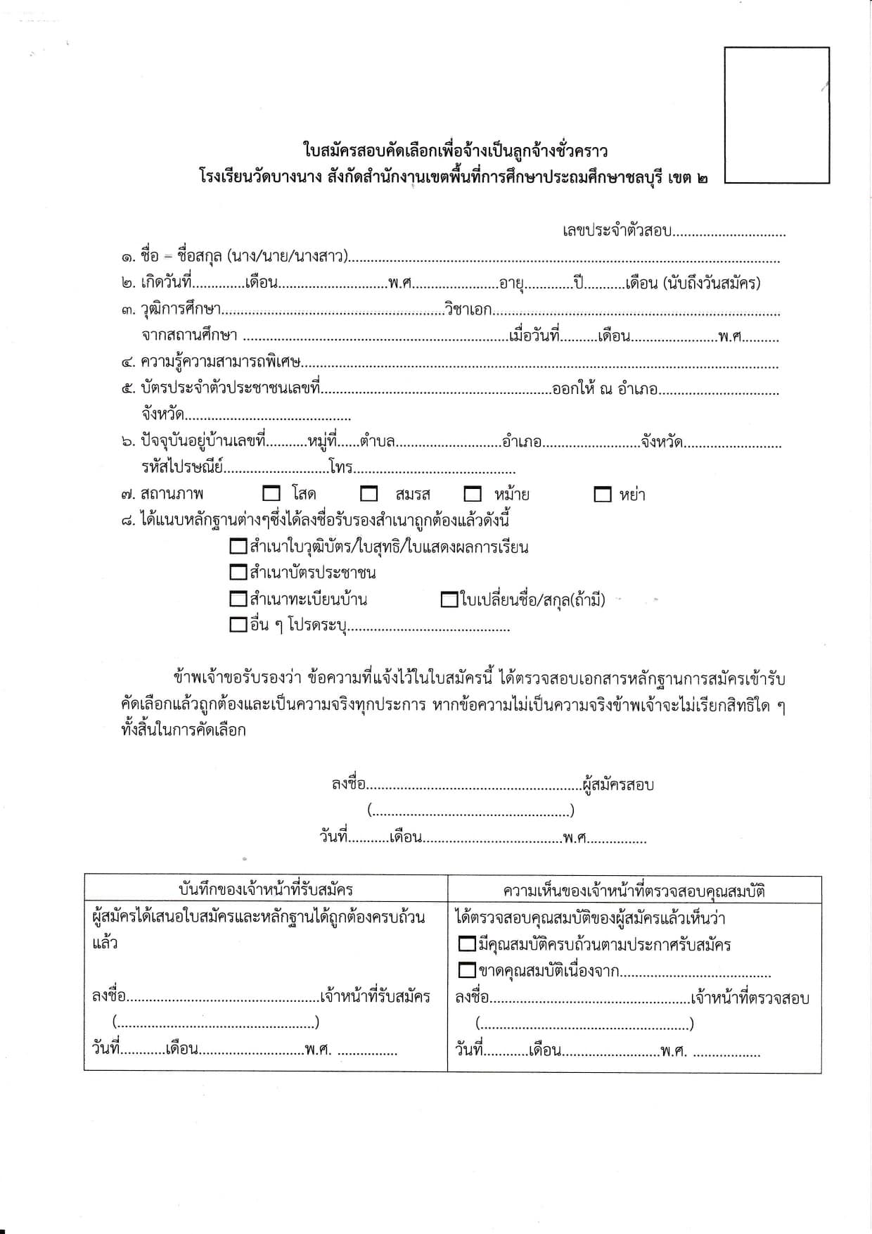 ชลบุรี เขต ๒ มีความประสงค์จะรับสมัครบุคคลทั่วไปเพื่อจัดจ้างเป็นลูกจ้างชั่วคราว ทำหน้าที่ครูผู้สอน จำนวน