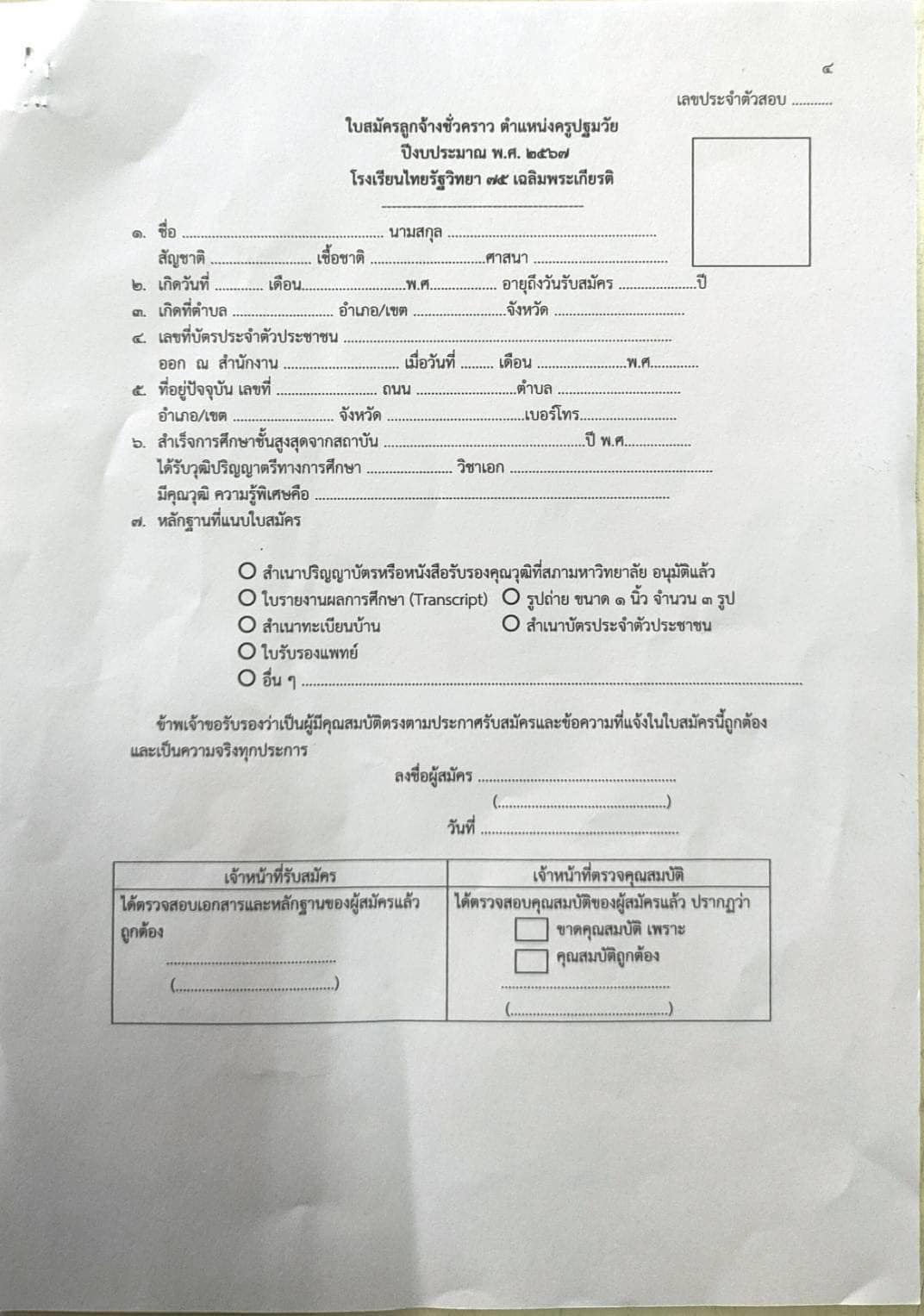รับสมัครคัดเลือกบุคคลเพื่อจ้างเป็นลูกจ้างชั่วคราวปฏิบัติหน้าที่ครูผู้สอน