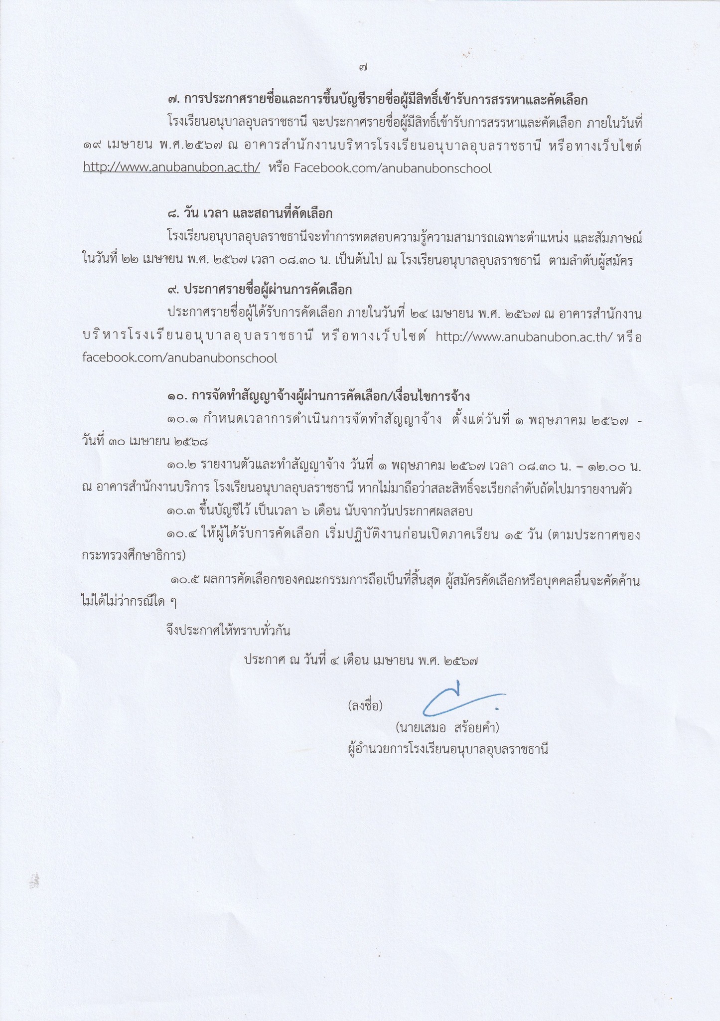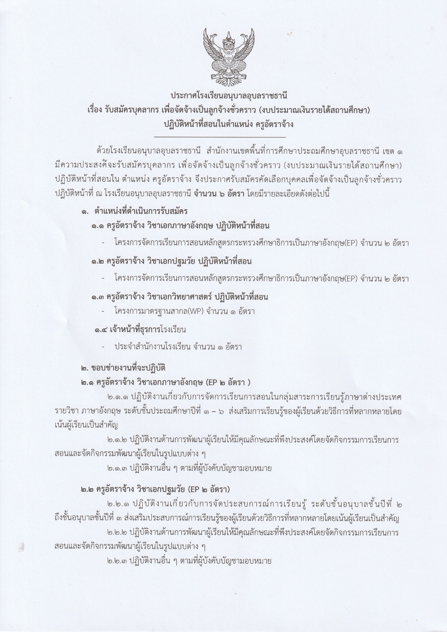 ที่มาประกาศ : เพจ โรงเรียนอนุบาลอุบลราชธานี