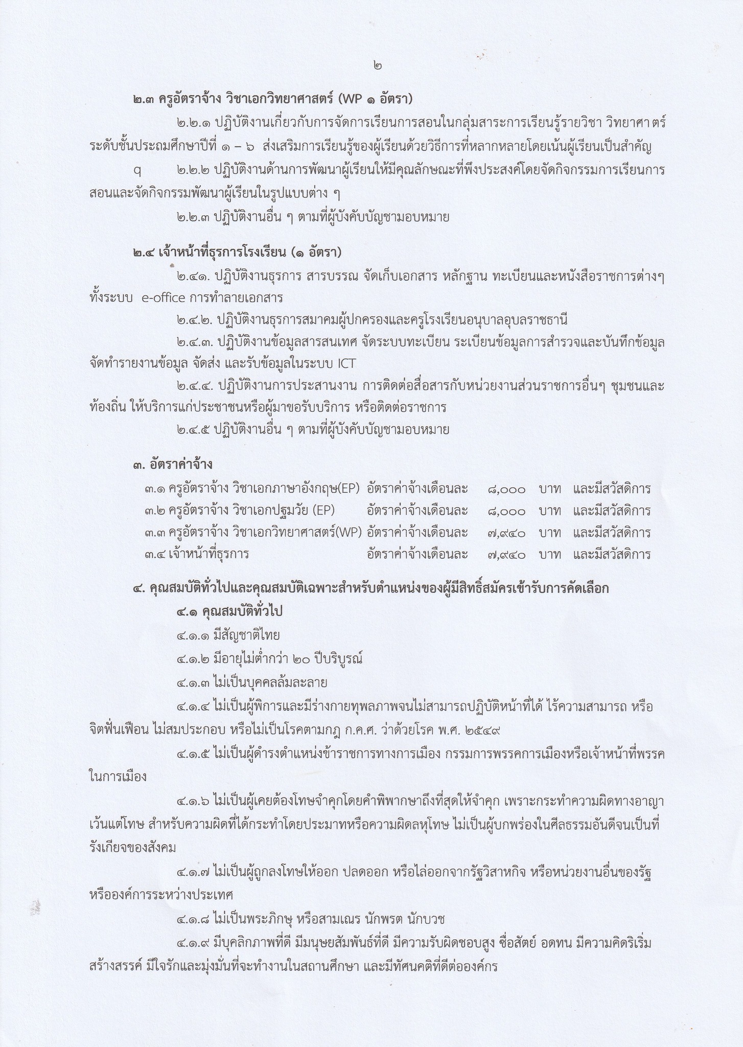 วิชาเอกภาษาอังกฤษ (EP) 2 อัตรา เงินเดือน 8,000 บาท