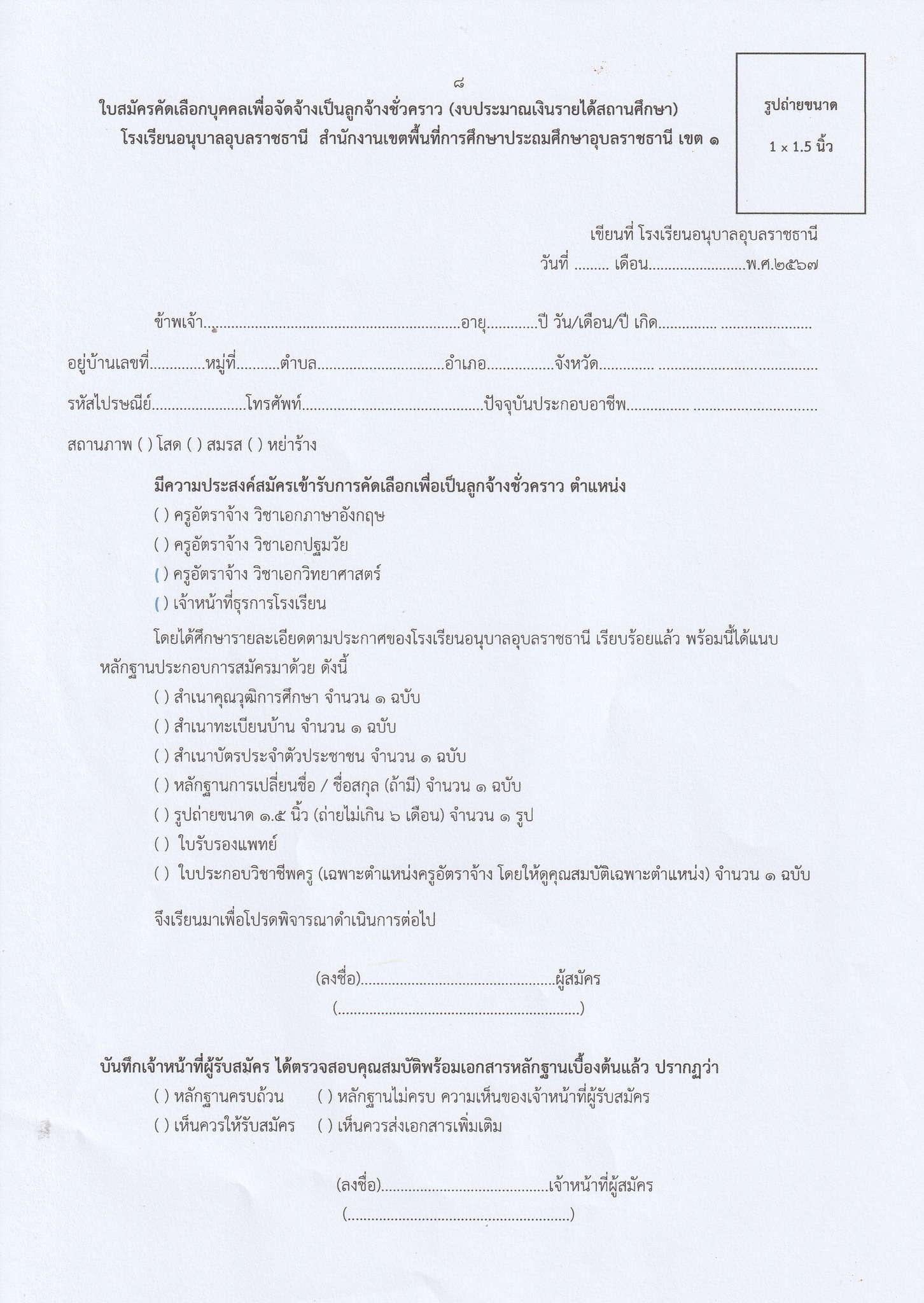 ผู้ประสงค์จะสมัครทุกตำแหน่งขอรับและยื่นใบสมัครด้วยตนเอง